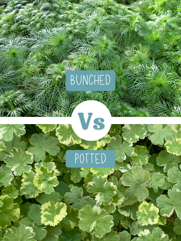 The short answer is that bunched and potted oxygenators do the same job, but in different ways. Both help oxygenate the water and reduce the nutrients that feed algae, but they work in different parts of the pond and on different timescales.