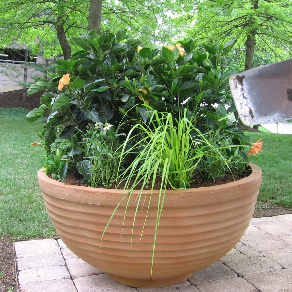 Large terracotta-toned Thames Bowl; a classic planter perfect as a centrepiece or container pond.