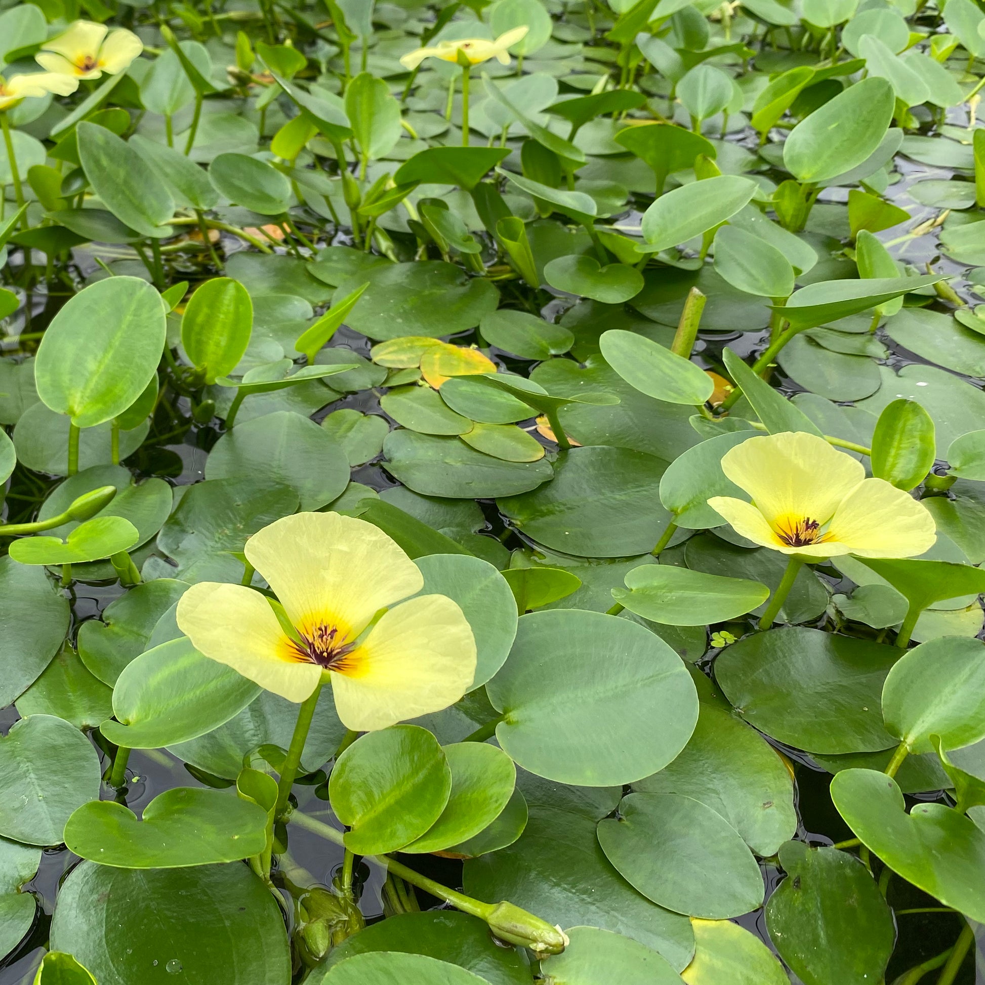 - Foliage: Glossy, oval, floating green leaves, yellow flowers